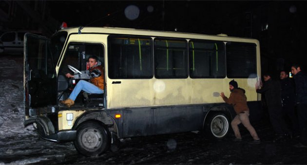 İstanbul’da bugün akşam saatlerinde etkili olmaya başlayan kar yağışı ve buzlanma nedeniyle bazı araçlar ulaşımda güçlük çekti. Eyüp ilçesi Şehnaz Caddesi yokuşunda buzlanma nedeniyle yokuş aşağı inmede zorluk çeken bir minibüs ters döndü. Mahsur kalan minibüsün yardımına içerideki yolcular koştu. ‘Şiki şiki baba’ şarkısı eşliğinde kurtarılan araç yol kenarına çekildi. Ardından belediyenin yol tuzlama aracının gelmesi ve yola tuz dökmesi ile eriyen karların ardından yol trafiğe açıldı.