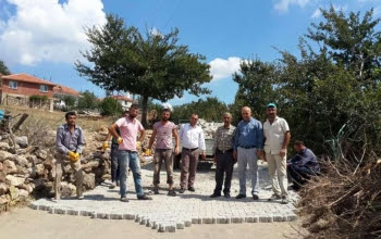 Çalışma kapsamında Demirci ilçesine bağlı Kerpiçlik Mahallesi’nin bozuk olan mezarlık yoluna parke taşı döşendi.