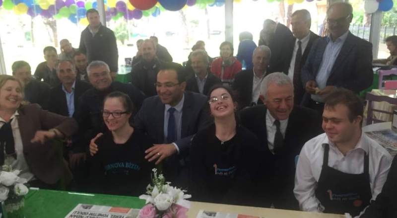 Gençlik Merkezinin ardından, Down Sendromlu gençlerin çalıştığı +1 Down Kafenin çalışanlarıyla bir araya geldi. Burada da, gençlerle uzun süre sohbet eden Yüksel " Türkiye'de ender örneklerini gördüğümüz projelerden biri, Bornova belediyemizin öncülüğünde hayata geçirilmiş. Bu kafenin çalışanlarının güler yüzünü ve sıcak sohbetini başka hiç bir yerde görmedim. Down Sendromlu gençlerimizin bizlerden eksiği değil, fazlası olduğunu artık herkes biliyor ama, bunu iş hayatında görmek ayrı bir mutluluk oldu. Fırsat ve imkan verildiğinde, bu gençlerimizin iş hayatında da nasıl başarılı olacaklarını burada görüyoruz. Dilerim ki bu tür mekanlar daha da çoğalır" dedi.