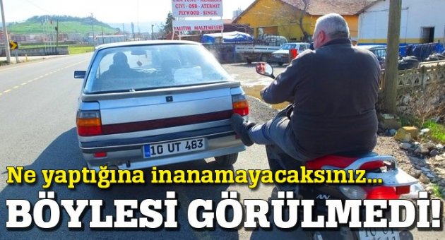 Motosikletinin direksiyon başına geçen Kırbaş, yolda kalan araçları ayağıyla iterek akaryakıt istasyonuna kadar götürüyor. Bigadiç'te 20 yıldır oto lastik tamirciliği yapan evli 38 yaşındaki Emin Kırbaş, yakıt yüzünden yolda kalan ve kendisinden yardım isteyen araç sürücülerinin imdadına ilginç bir yöntemle yetişiyor. Motosikletine atlayan Kırbaş, yolda kalan araca ayağını dayayıp, akaryakıt istasyonuna iterek götürüyor.
