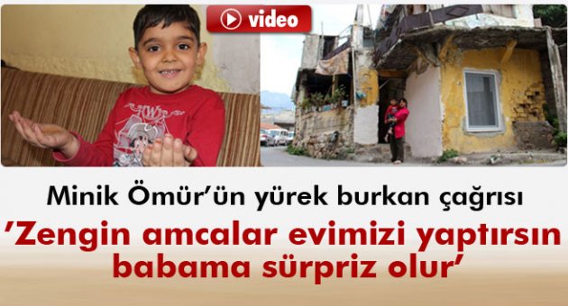 Esentepe mahallesinde ikamet eden Kader ve Şaban çiftinin tek çocukları olan 5 yaşındaki Ömür Bulgurcu, evlerinin yaptırılması için epilepsi (sara) hastası olan babasının çalışamadığını belirterek, “Zengin amcalar yardım edip evimizi yaptırsın” diyerek yardım istedi.