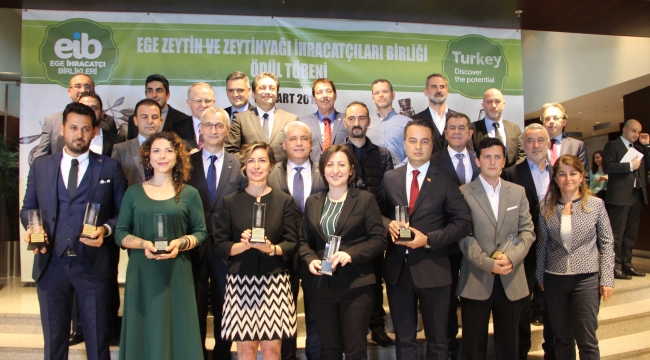 Ege İhracatçı Birlikleri’nde düzenlenen ödül töreninde, Ege Zeytin ve Zeytinyağı İhracatçıları Birliği üyeleri arasında ambalajlı zeytin ve zeytinyağı kategorilerinde ilk 10 firmaya ödül verildi. Ege Zeytin ve Zeytinyağı İhracatçıları Birliği Yönetim Kurulu Başkanı Davut Er, Zeytincilik sektörünün 2018 yılı ihracat hedefinin 500 milyon dolar olduğunu dile getirdi.