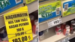 Bir zincir markette yaşanan fiyatlandırma skandalı, bir tüketicinin dikkatinden kaçmadı. Ocak ayından bu yana 193 TL'ye satılan kaşar peynirine indirim etiketi konularak, fiyatının 215 TL'den 193 TL'ye düştüğü izlenimi yaratıldı. Durumu fark eden bir vatandaş, o anları kayda alıp sosyal medyada paylaşarak tepki gösterdi.